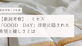 音楽と豆知識 歌詞考察|ミセス「GOOD DAY」浮世に隠された希望と優しさとは Mrs. GREEN APPLE(ミセスグリーンアップル)「GOOD DAY」の歌詞の意味を考察。浮世・常夜・茶番といった言葉に隠された文化的背景や語源を掘り下げながら、歌詞全体が伝える「日常を肯定する力」を解説。他では読めない深い歌詞解釈を紹介します。 音楽と豆知識
