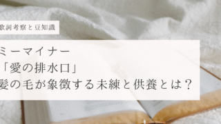 ミーマイナー『愛の排水口』の歌詞の意味を考察します。排水口や髪の毛が象徴する未練や別れの心理、タイトルの深い意味まで詳しく解説。誰かに話したくなる新視点が満載の記事です。