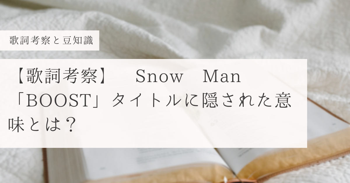 この記事では「Snow Man(スノーマン)」の「BOOST(ブースト)」の歌詞の意味についての考察と歌詞に含まれるワードについての豆知識を書いています!