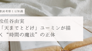 松任谷由実「天までとどけ」の歌詞の意味を徹底考察。「今日だけ」という言葉に隠された時間の哲学や、曲名“天までとどけ”の由来、秋・渚・水彩といったモチーフの意味を豆知識とともに深掘り。他では読めない驚きの視点で解説。