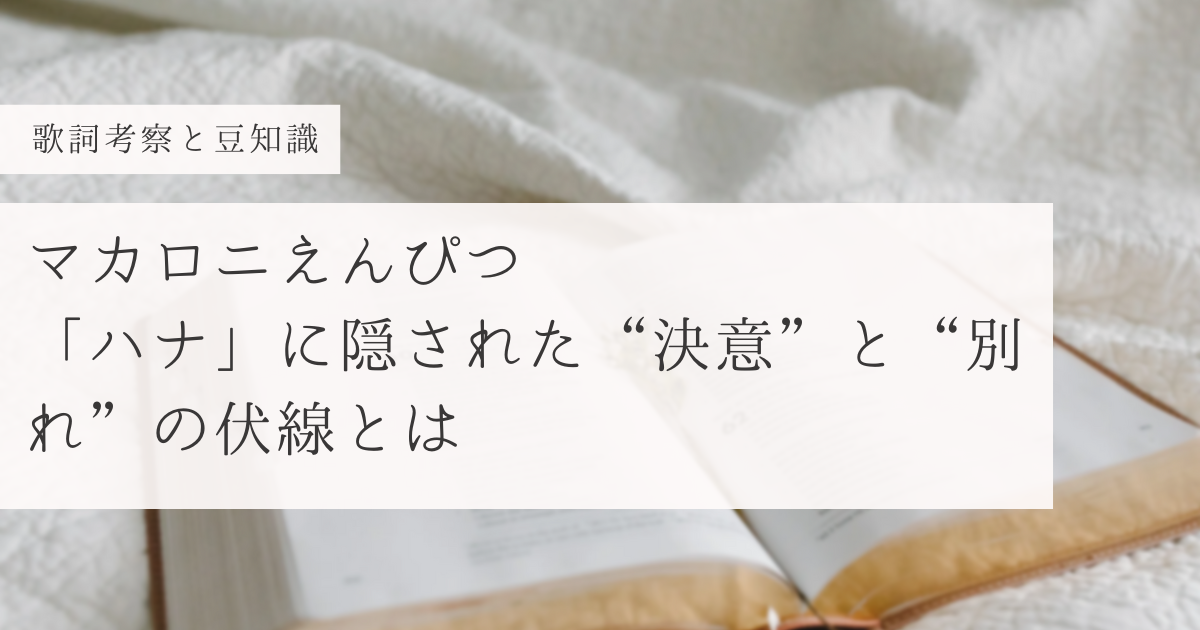 この記事では「マカロニえんぴつ」の「ハナ」の歌詞の意味について考察と歌詞に含まれるワードについての豆知識を書いています!