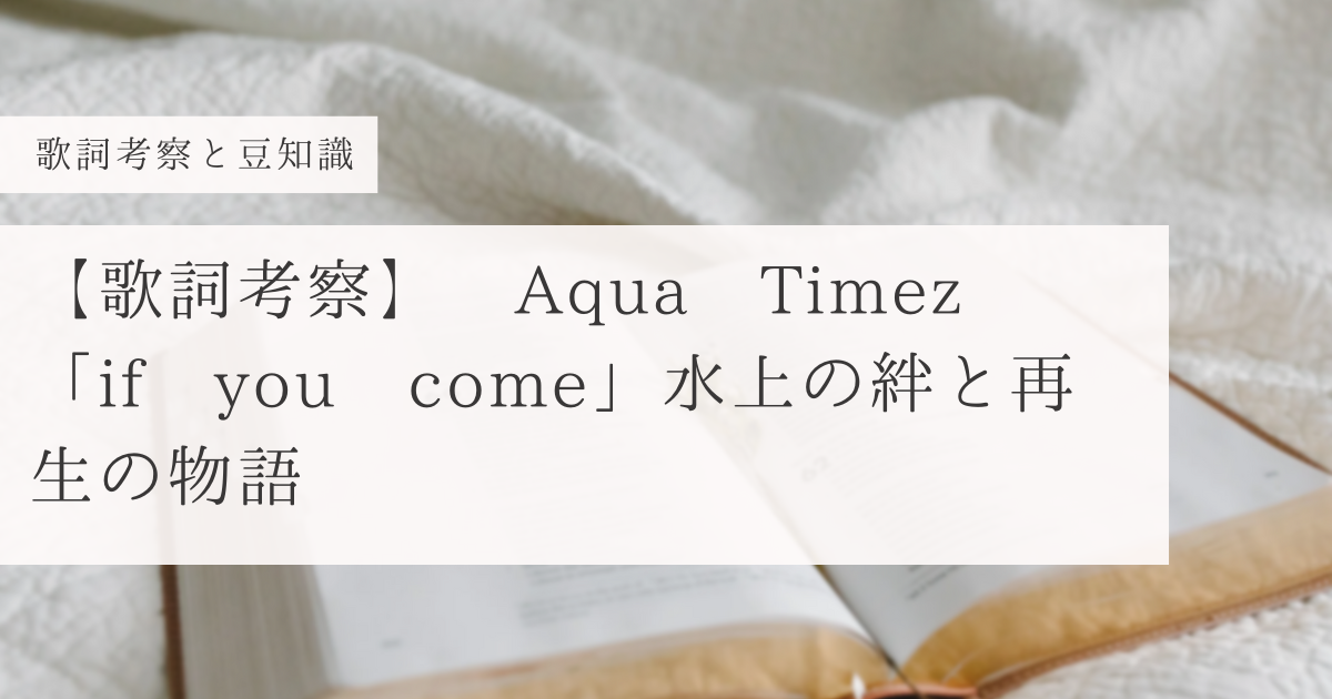 この記事ではAqua Timez(アクアタイムズ)」の「if you come(イフユーカム)」の歌詞の意味について考察と歌詞に含まれるワードについての豆知識を書いています!