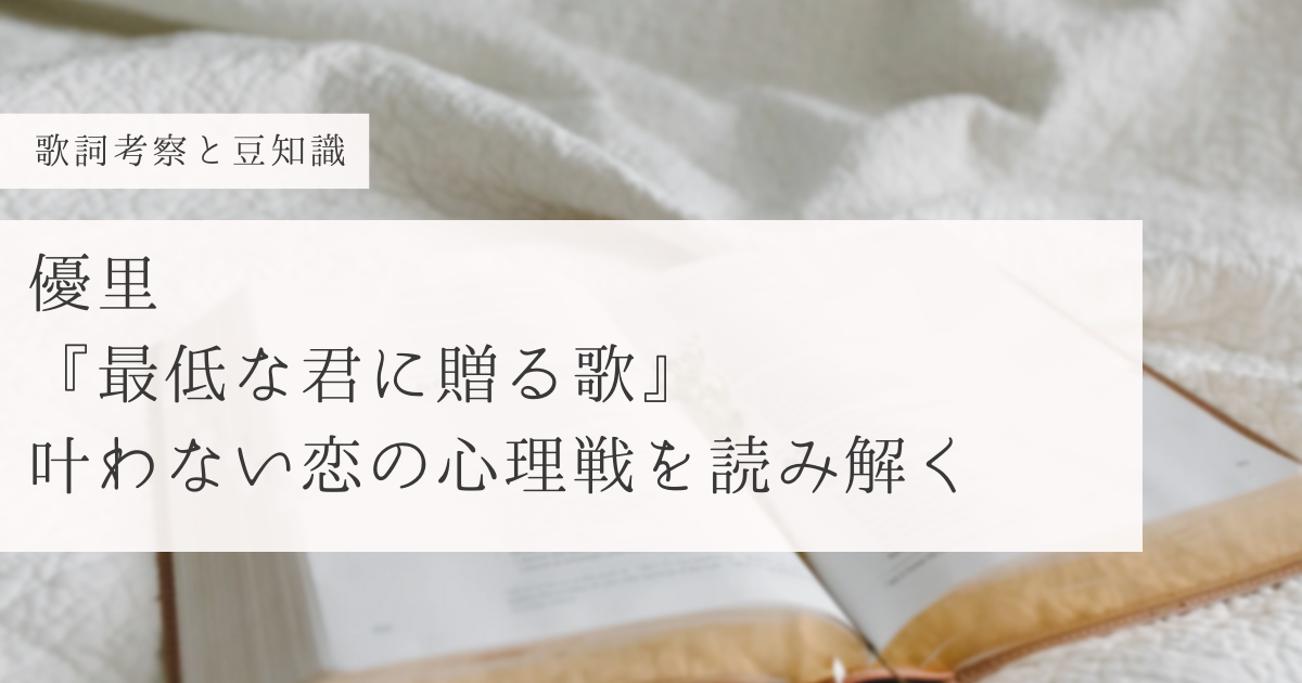 歌詞考察|優里『最低な君に贈る歌』叶わない恋の心理戦を読み解く